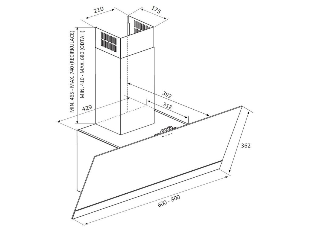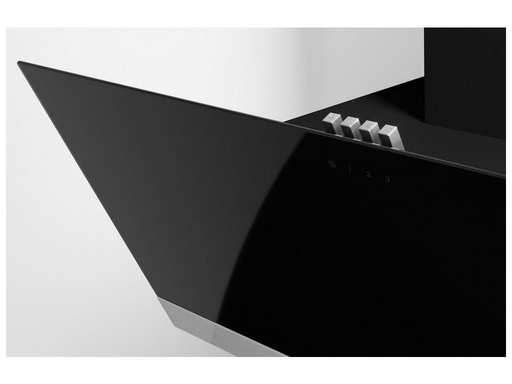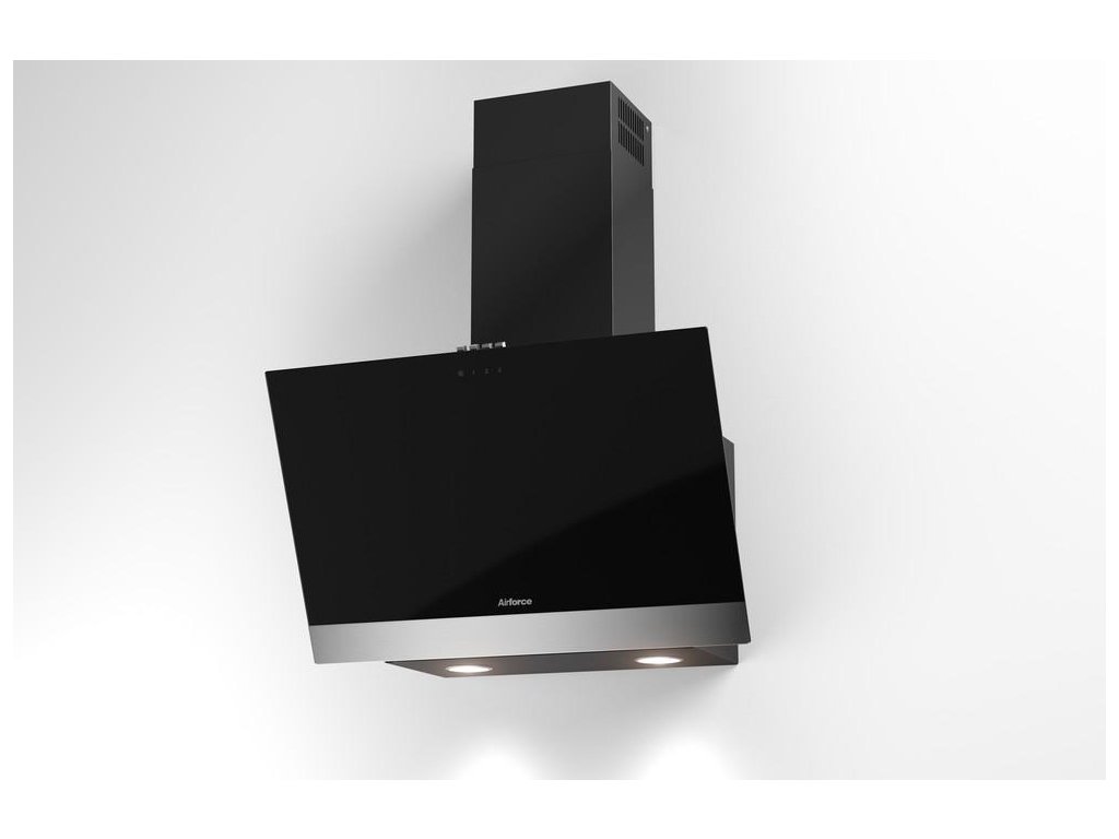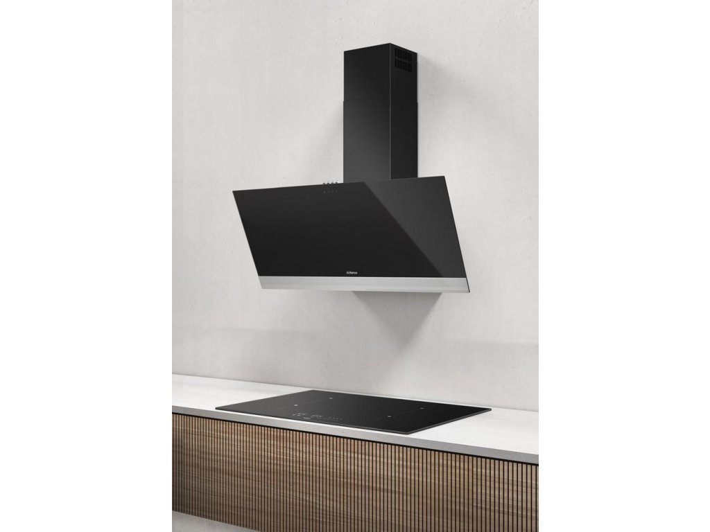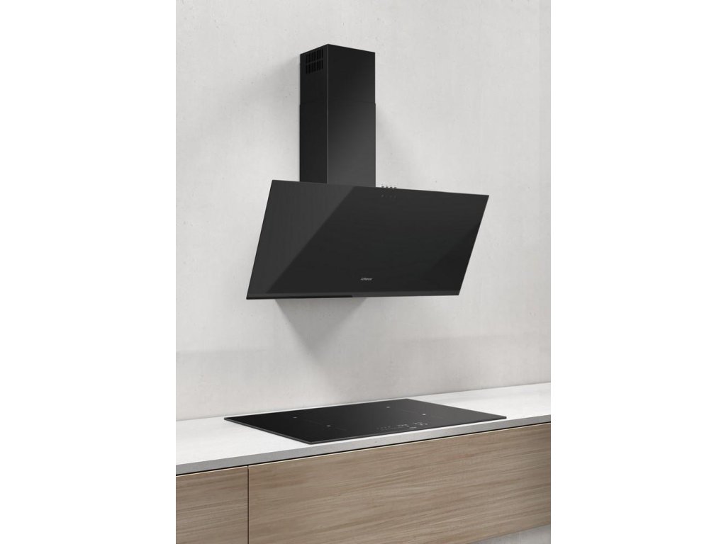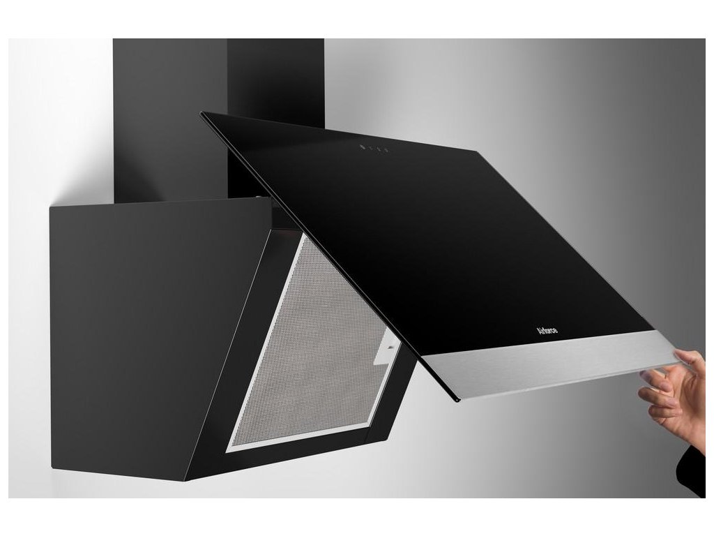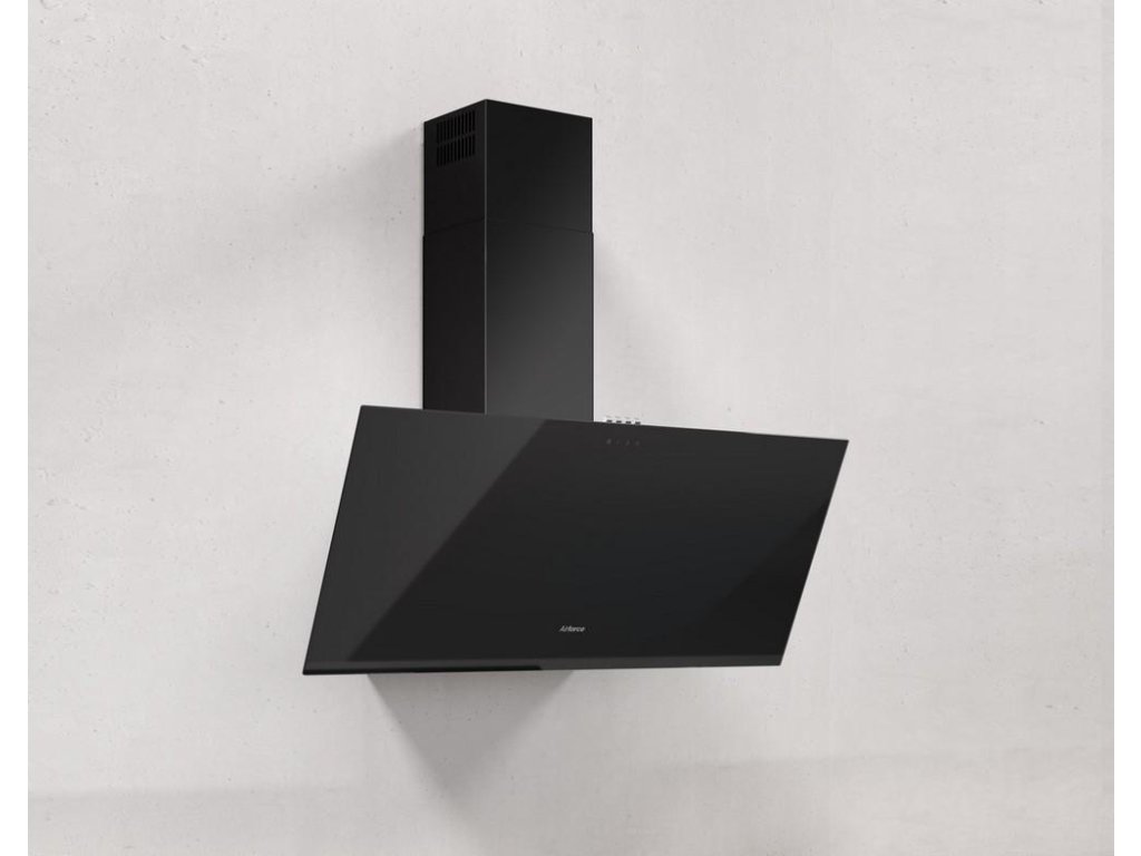 Tělo odsavače par v kombinaci černě stříkané oceli a černého skla podtrhne vzhled vaší kuchyně. Elegantní zkosený tvar digestoře zajišťuje maximální pohodlí při vaření.