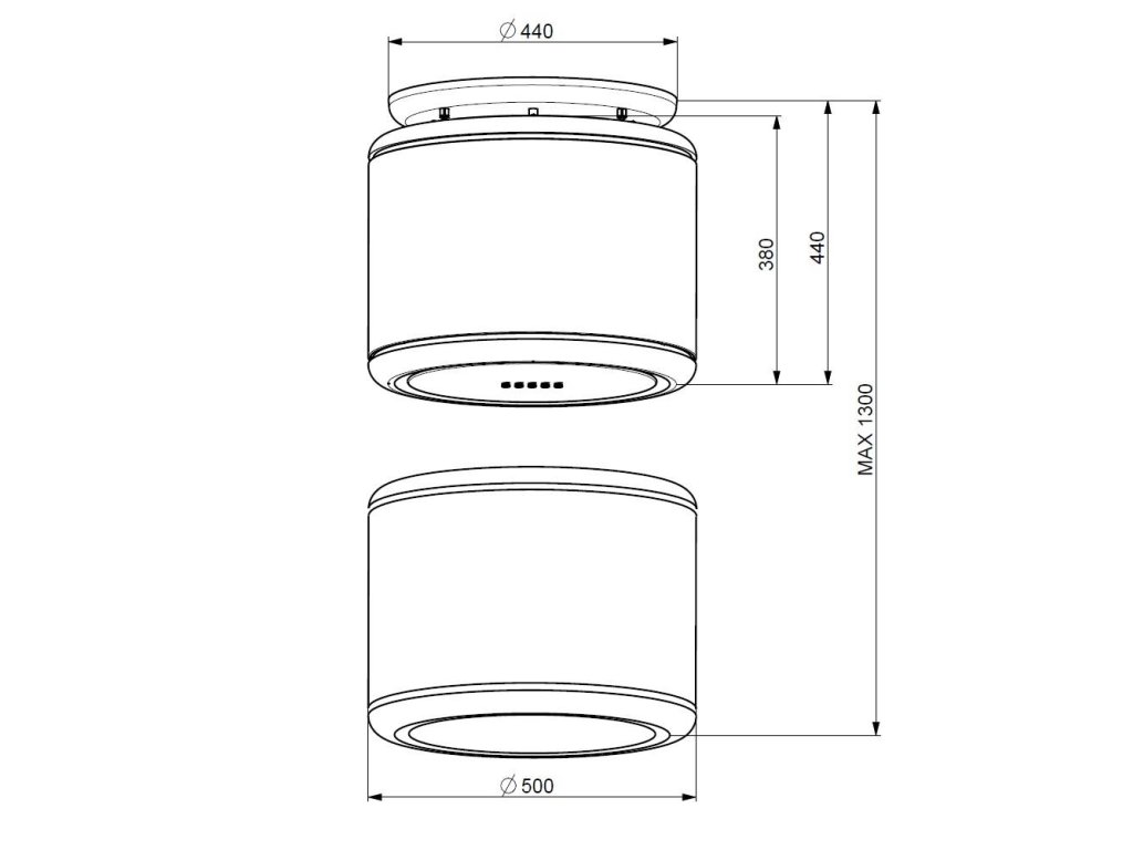 Ucelený vzhled umocňuje spodní krycí panel z bílého skla se štěrbinovým sáním. Koncentrovaný proud vzduchu o vyšší rychlosti získává vlastnost strhávat s sebou i páry mimo půdorys sací zóny.