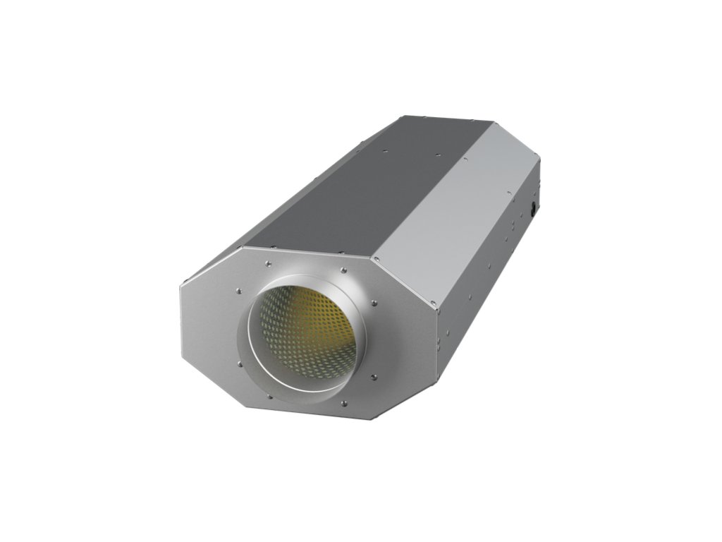 Izolovaný potrubní ventilátor s vysokou účinností a mimořádně tichým provozem. Kompaktní ocelové tělo s vestavěným tlumičem hluku zajišťuje optimální odhlučnění a dlouhodobý provoz s teplotní odolností až do 60 °C.