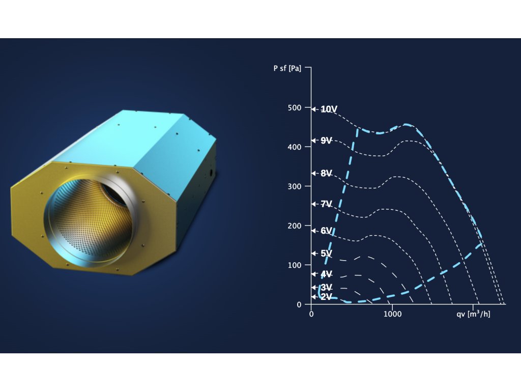 Řada EMI EC představuje vysoce účinné diagonální ventilátory určené pro potrubní montáž, které kombinují kompaktní konstrukci, tichý provoz a moderní EC technologii s plynulou regulací otáček.