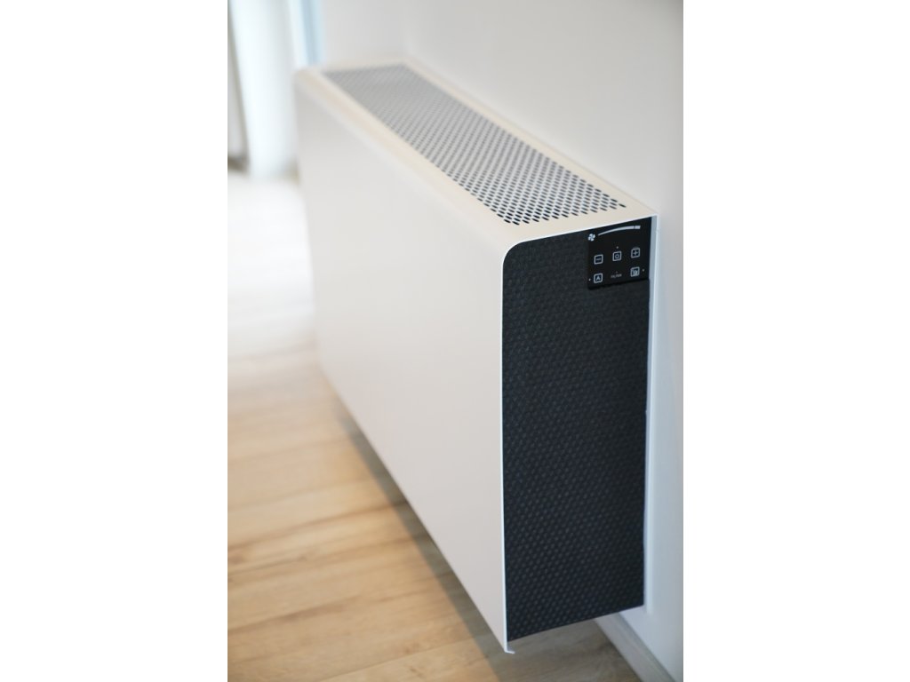 Decentrální (lokální) rekuperační jednotka XROOM s rekuperací tepla a vlhkosti, kombinovaná s konvektorem.