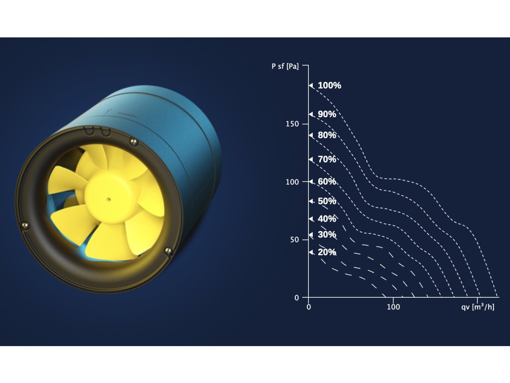 – výborně se tedy hodí pro použití v malých ventilačních systémech obytných i komerčních prostor.