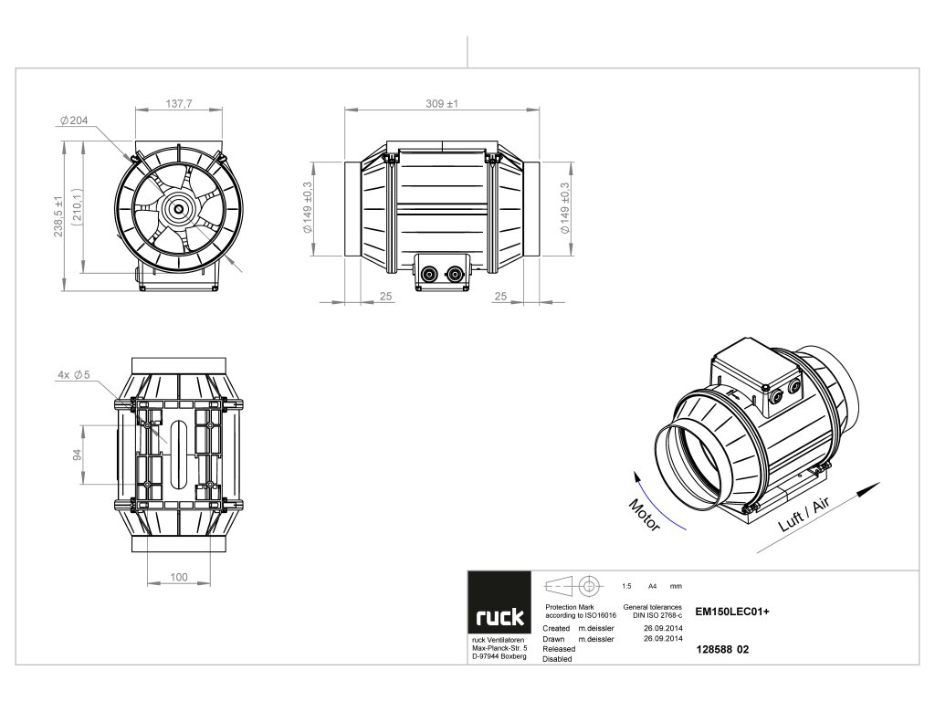 Etamaster EM 150L EC 01 Ø 150 - Ø 400