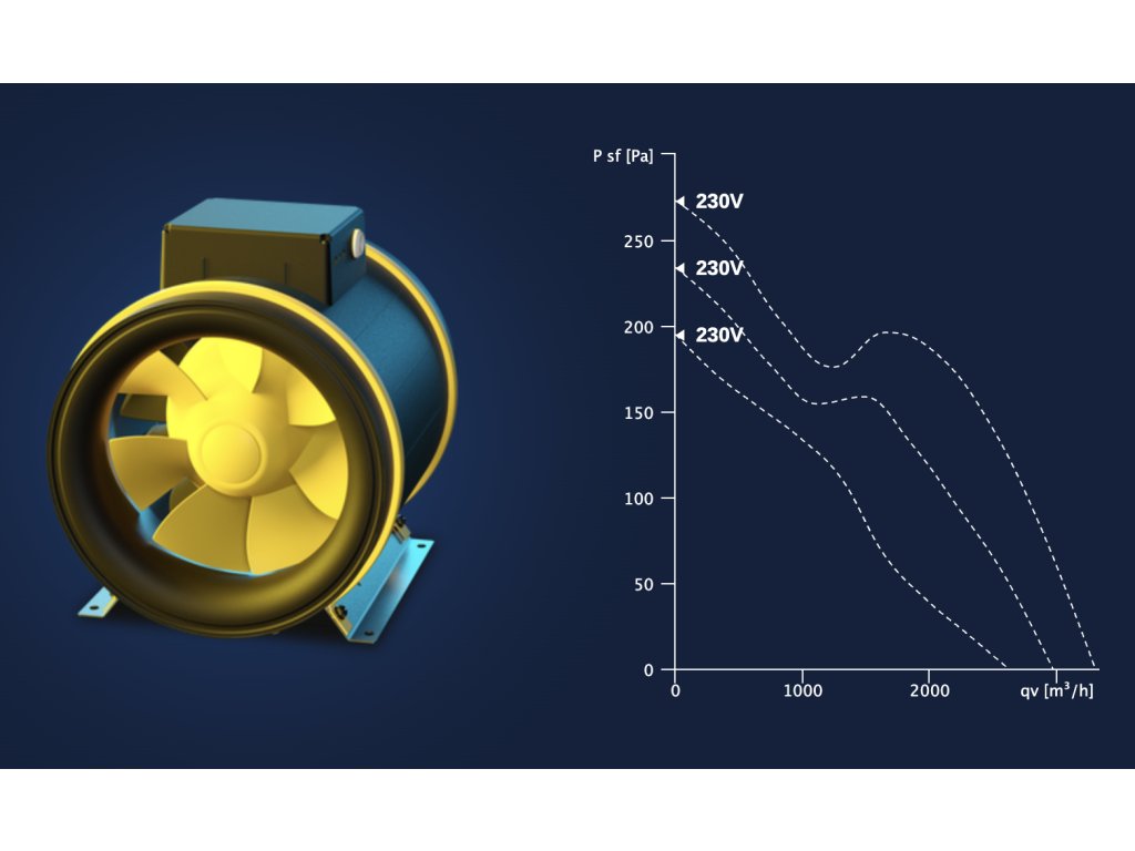 Těleso ventilátoru je vyrobeno z nárazuvzdorného, zesíleného polypropylenu, oběžné kolo z plastu.