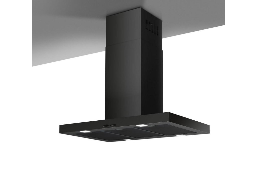 Ostrůvková digestoř nadčasového tvaru obráceného písmene T vybavená výkonným motorem s nízkou spotřebou elektrické energie.