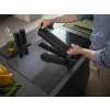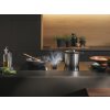 Přesouvání nádobí na povrchu Galilea není žádný problém. Horký hrnec nebo pánev můžete snadno přemístit po stabilní ploché mřížce, která nasává páry. Mřížka se nebude pohybovat, protože leží dokonale v jedné rovině se skleněnou deskou a zajišťuje tak maximální bezpečnost.