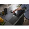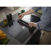 Bíle podsvícené dotykové posuvné ovládání umožňuje pohodlné a intuitivní nastavení varných zón a úrovně odsávání par jediným pohybem.