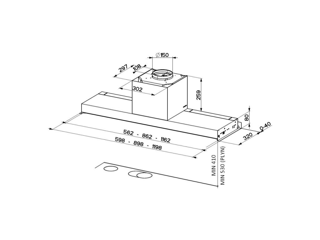 Vzduch je nasáván štěrbinou po obvodu krycího panelu. Koncentrovaný proud vzduchu proudí mnohem rychleji a získává vlastnost strhávat sebou i páry v širším okolí sací zóny. Štěrbinové sání oceníte zejména u plně vestavných digestoří, které svým rozměrem varnou zónu nikdy zcela nepřekryjí. Výklopné čílko z bílého skla spolehlivě ochrání dvířka skříňky před parami vzniklými během vaření.