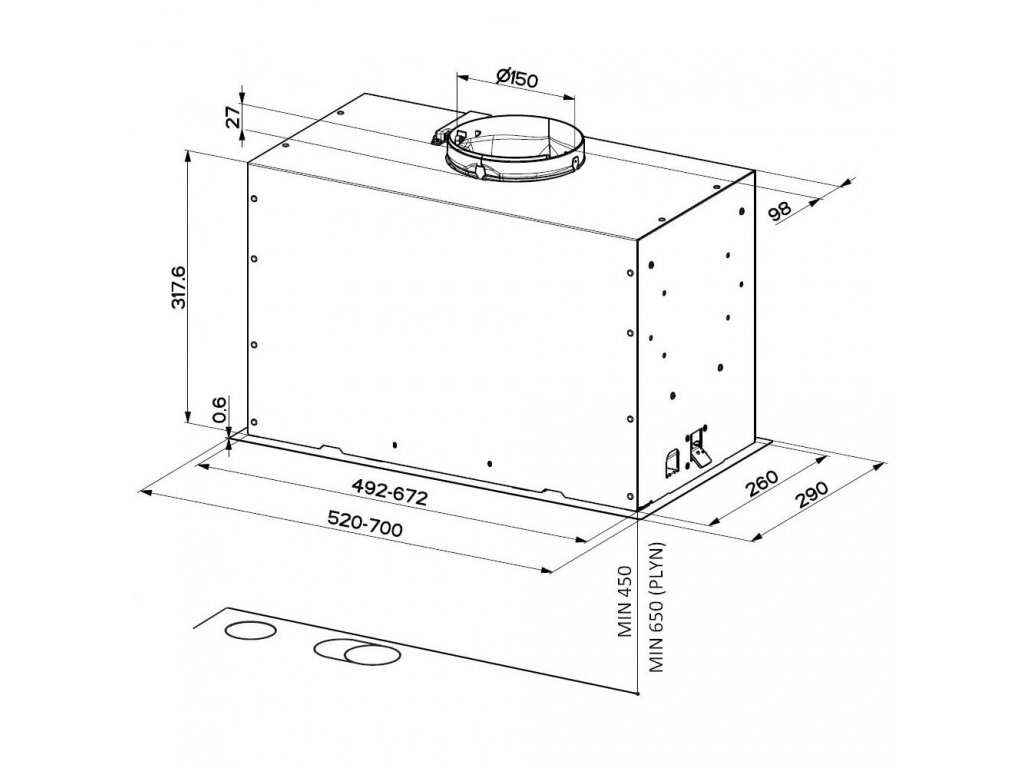 Lze ji také propojit s externím motorem na fasádu MISTRAL. V těchto případech jsou technické parametry digestoře shodné s parametry vybrané externí ventilační jednotky.