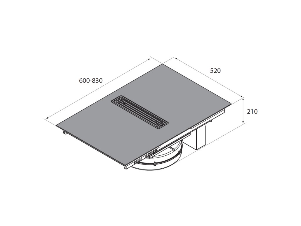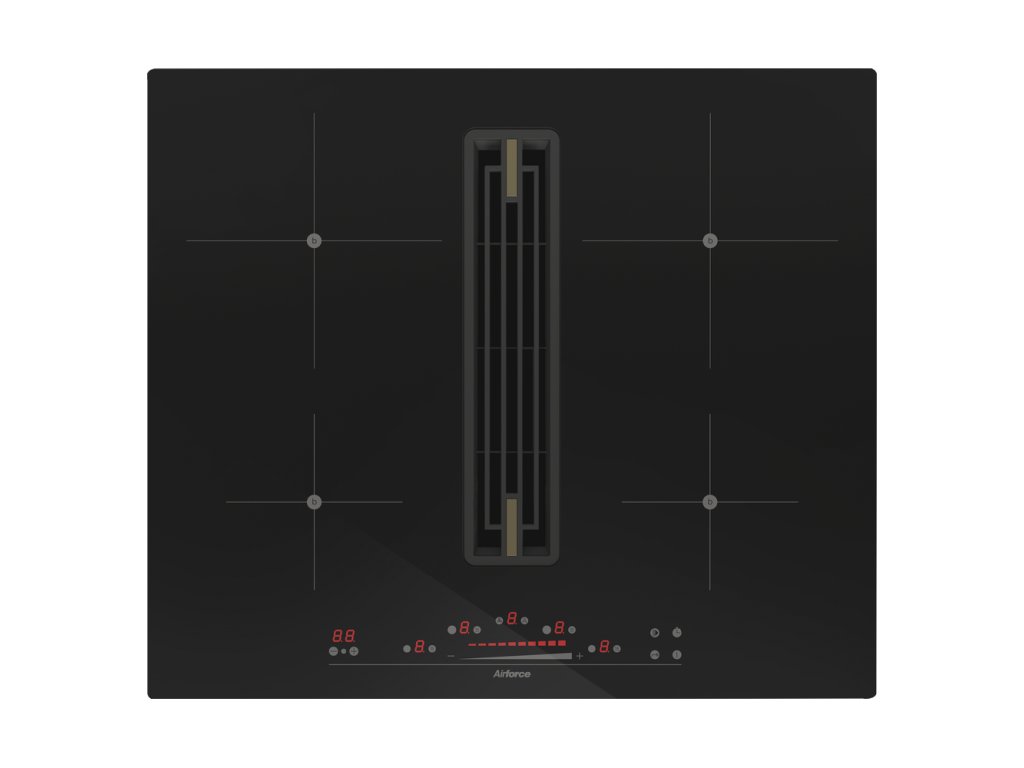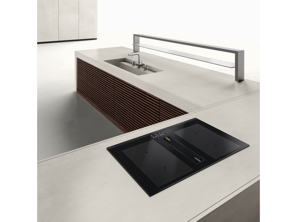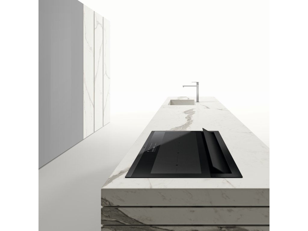 Páry vzniklé při vaření jsou odsávány sací zónou umístěnou přímo v centru indukční varné desky. Lamely centrální mřížky jsou směrované šikmo dolů a bezpečně odvedou případnou tekutinu do záchytného prostoru.