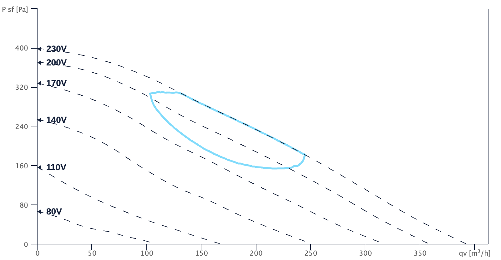 Na rozdíl od axiálních ventilátorů využívá Ruck ISOR radiální oběžné kolo, které je schopné vytvářet vyšší tlak vzduchu. Díky tomu si ventilátor zachovává stabilní průtok i v systémech s vyšším odporem – například při použití filtrů, tlumičů hluku, zpětných klapek nebo delších potrubních rozvodů.
