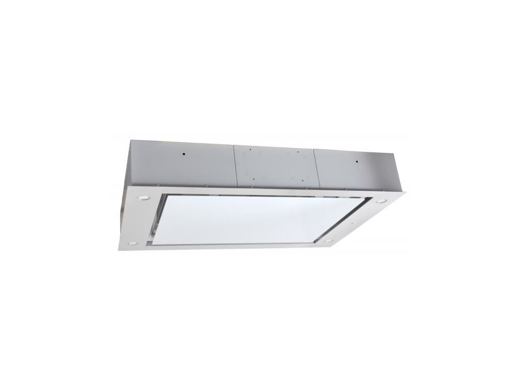 Stropní digestoř s externím motorem, šíře 90 cm, nerez / bílé sklo, max. výkon 822 m³/h (5 Pa), hlučnost Lw 51 – 69 dB(A), 3 rychlosti + TURBO, odsávací jednotky mají individuálně vyvažovanou turbínu, motory jsou opatřené vratnými tepelnými pojistkami (při přetížení motoru vypne, po jeho vychladnutí opět sepne), kovové sendvičové tukové filtry, které lze mýt v myčce, výstupní průměr 150 mm, možnost práce pouze v odtahovém režimu, VIP výbava: úsporné LED osvětlení 4 × 2 W, elektronické dálkové ovládání, zdarma dálkový ovladač i s bateriemi, zdarma přiloženy montážní konzole, výdechové hrdlo a propojovací kabel 10 m, Benefity: stropní digestoř je skrytá ve stropním podhledu a dává tak vyniknout ostatnímu vybavení kuchyně, externí motor lze umístit i mimo kuchyň a snížit tak provozní hlučnost