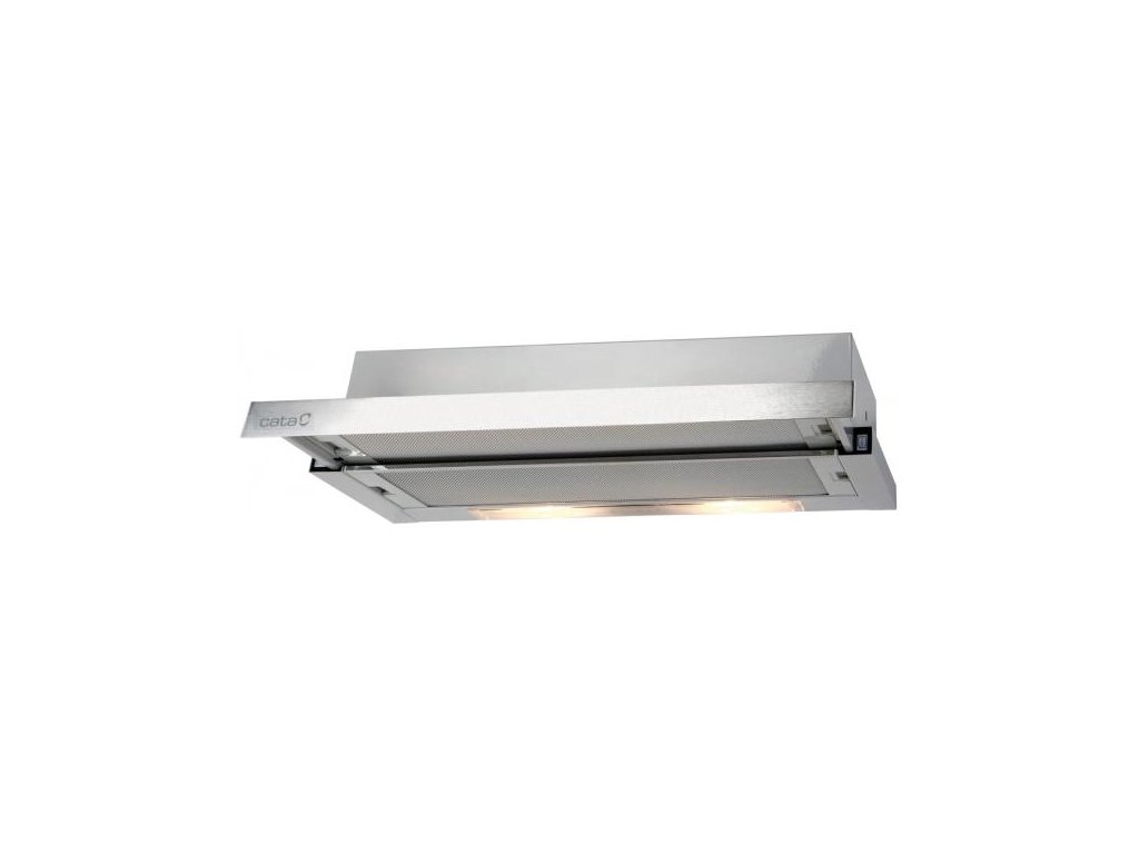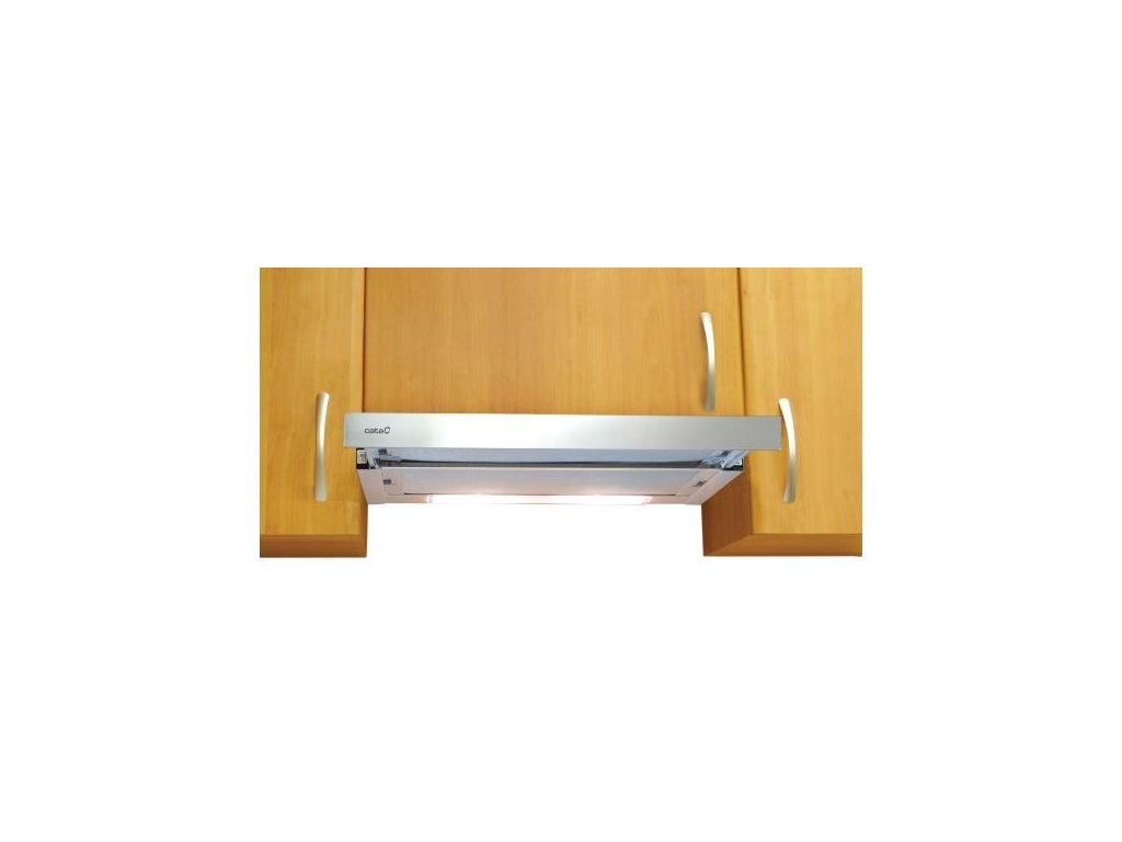 Vestavná výsuvná, 600 mm, nerez lišta s povrchem DurAlum, 1 motor 80 W, 2 rychlosti, 340 m3/h (15 Pa), max. tlak 194 Pa, max. hlučnost Lw 55 dB.