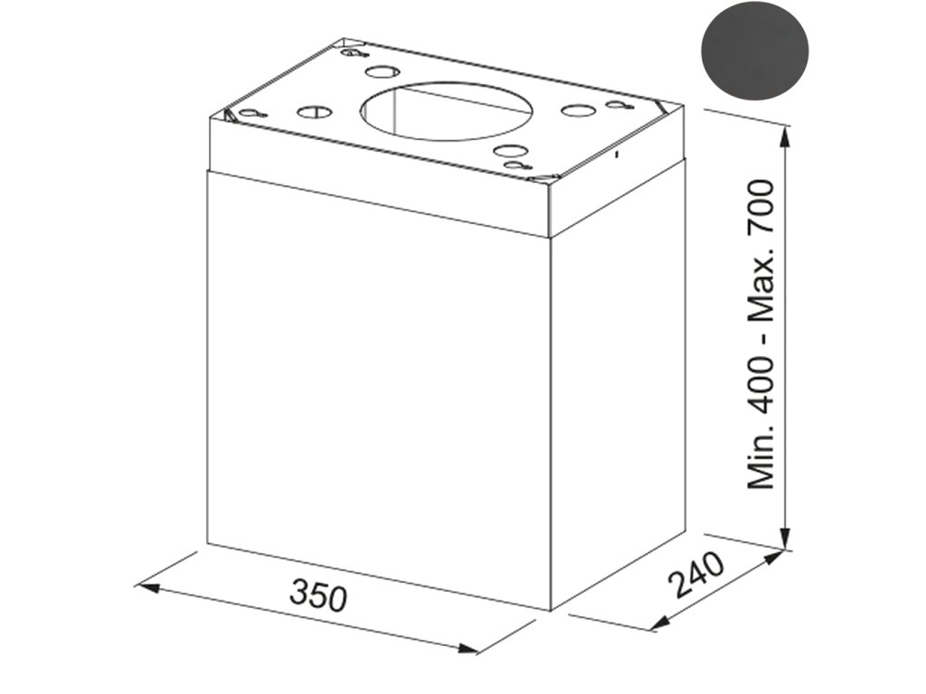 Teleskopický komín v délce až 990 mm k digestořím Black Tie BK, Cocktail BK, Cocktail XS BK, Vanity BK, Northia BK.