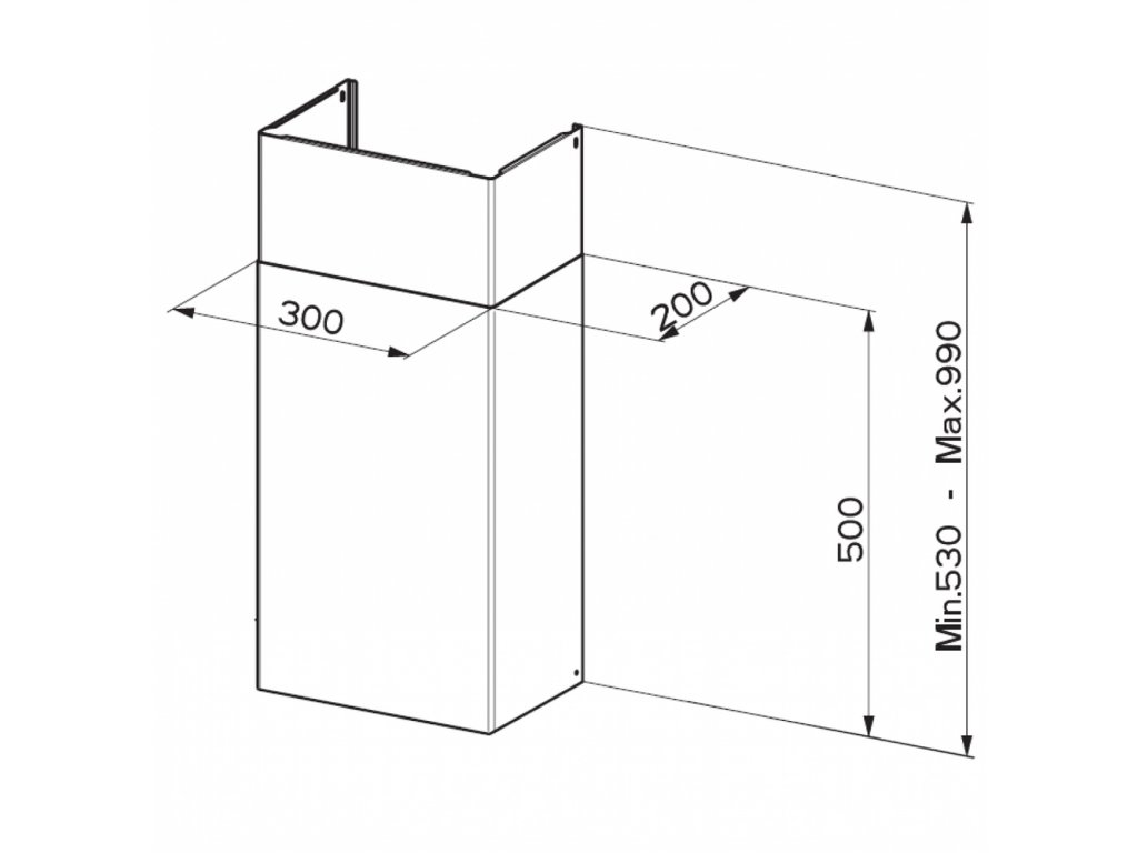 Teleskopický komín v délce až 990 mm k digestořím Glam Light Zero Drip, Glam Light Zero Drip Plus.