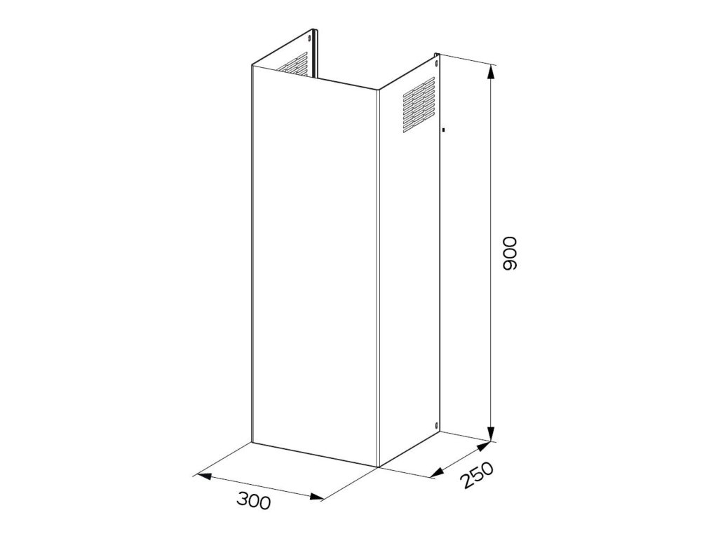 Tento prodloužený komín nahrazuje stávající horní komín, který je běžně součástí digestoře.