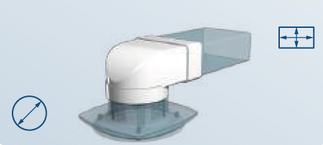Kruhovou část má ve velikosti potrubí 100, 125 a 150 mm a ploché potrubí 55 x 110, 60 x 204 a 90 x 220 mm.