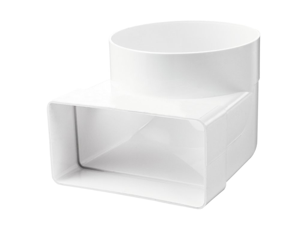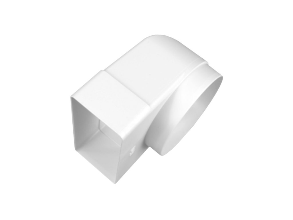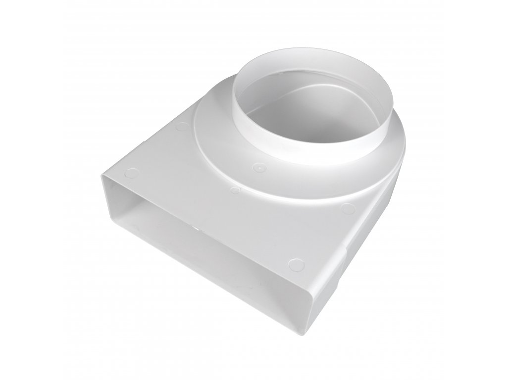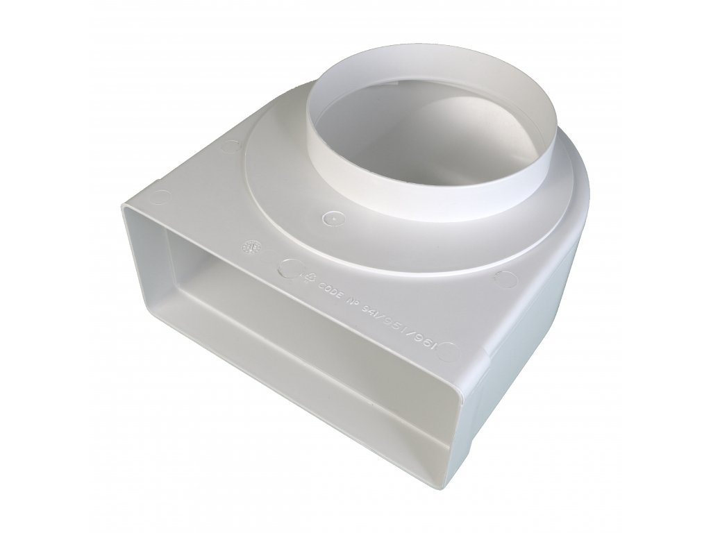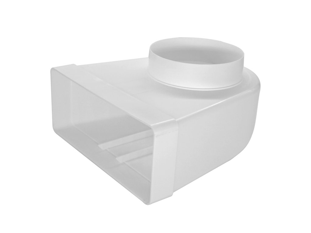 Plastové přechodové koleno slouží jako spojka pro napojení hranatého potrubí o velikostech 55 x 110 / 60 x 204 a 90 x 220 mm a kruhového