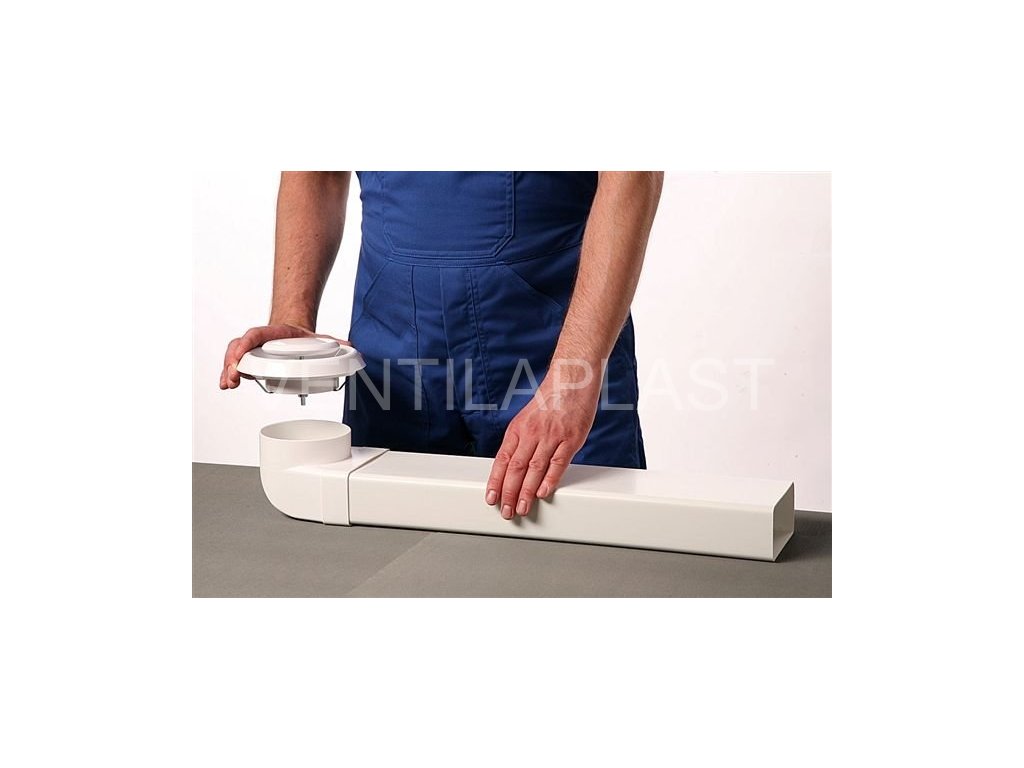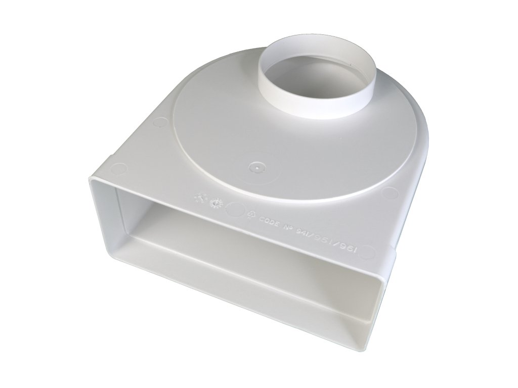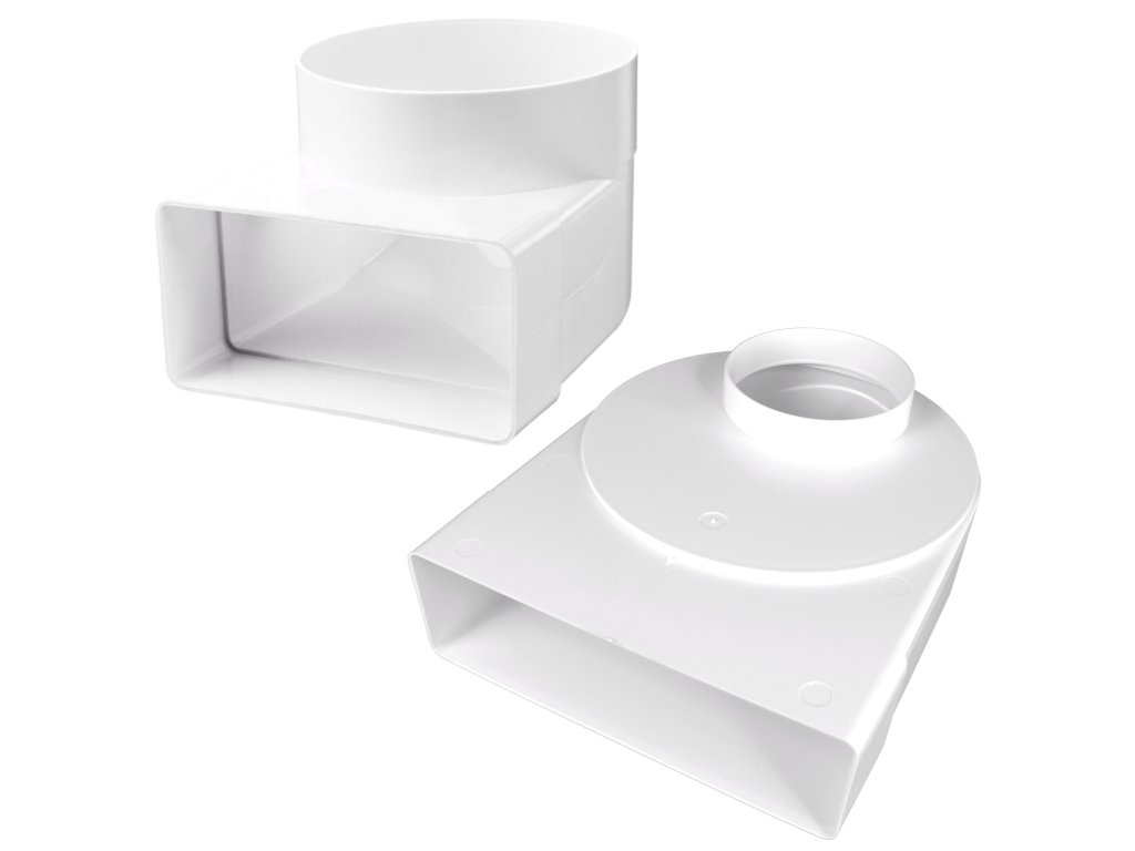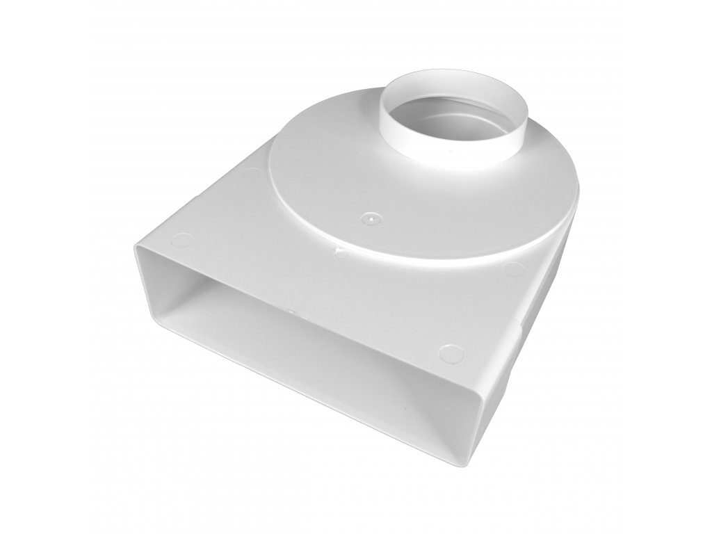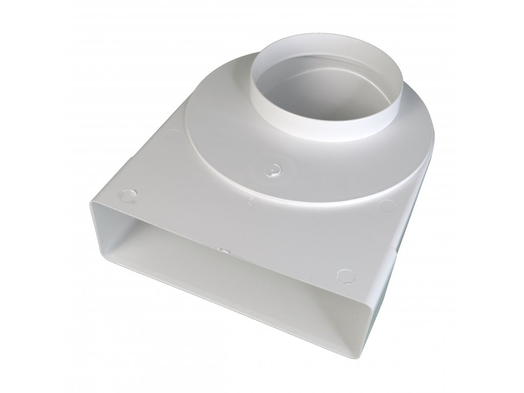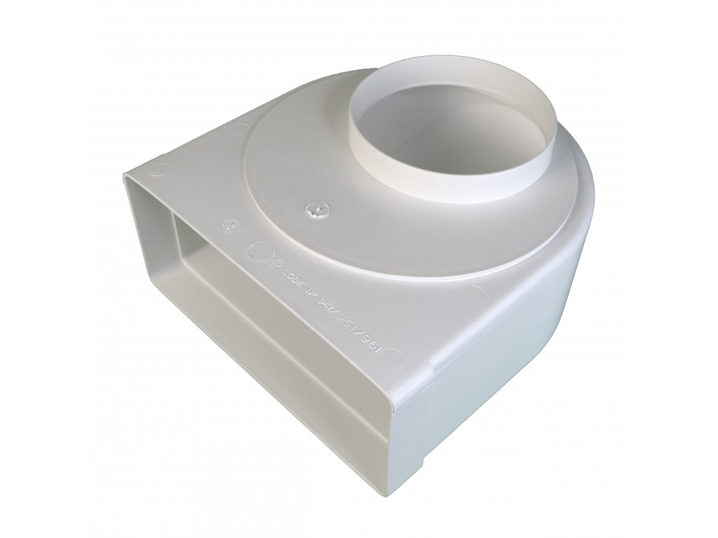 Plastové přechodové koleno slouží jako spojka pro napojení hranatého potrubí o velikostech 55 x 110 / 60 x 204 a 90 x 220 mm a kruhového