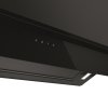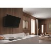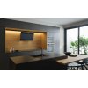 Digestoř má lesklý čelní panel z bezpečnostního skla s elegantním matným pruhem.