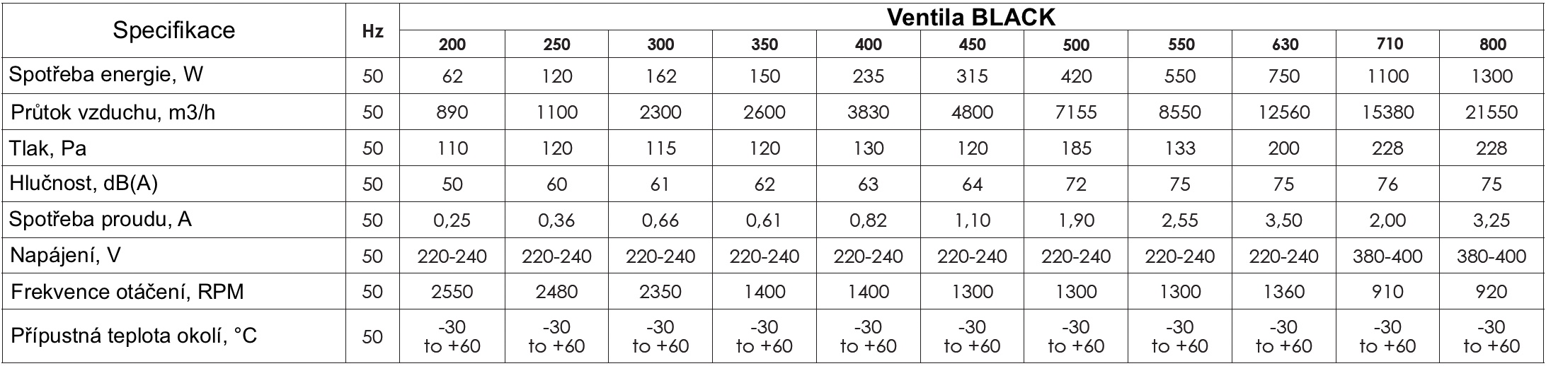 Ventila Black je navržen s důrazem na dlouhou životnost a stabilní provoz i při každodenním zatížení. Jeho konstrukce splňuje parametry, které jsou běžně vyžadovány v průmyslu.