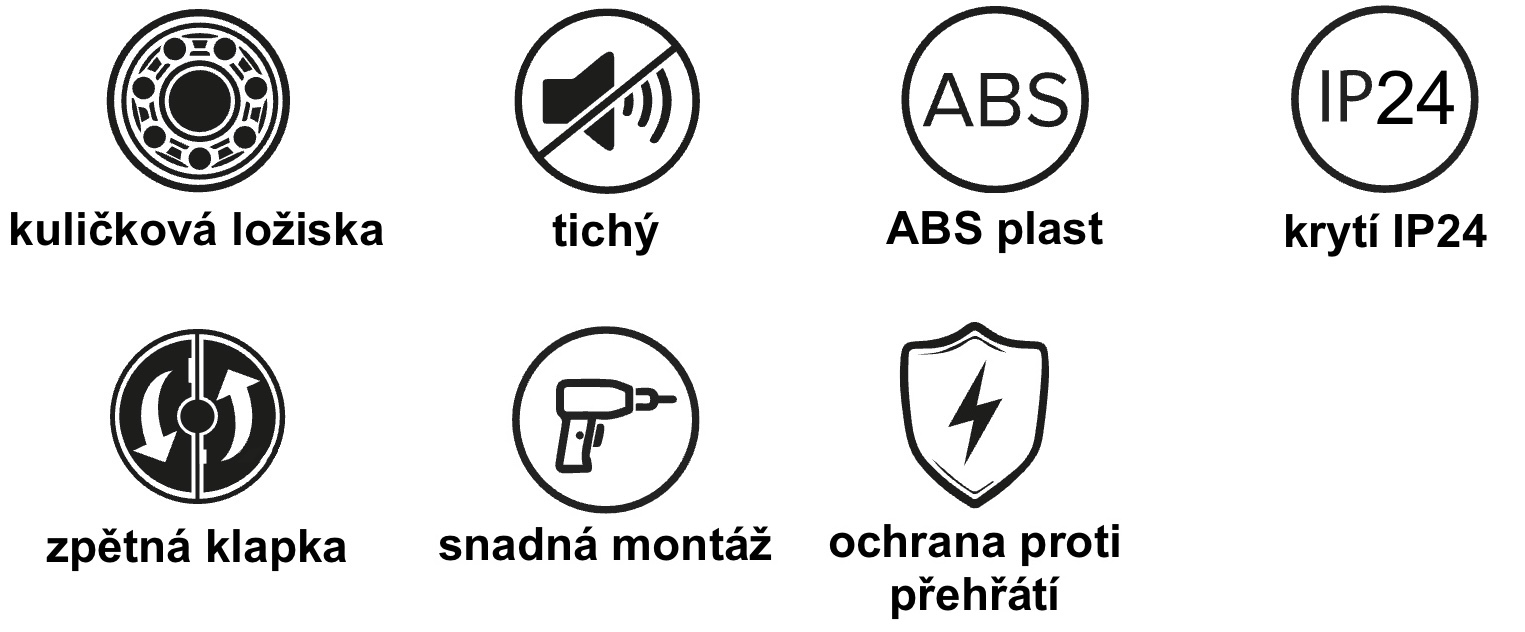 Ventilátor pracuje na principu axiálního odtahu a je určen výhradně pro odvod vzduchu z místnosti, nikoliv pro jeho přívod.