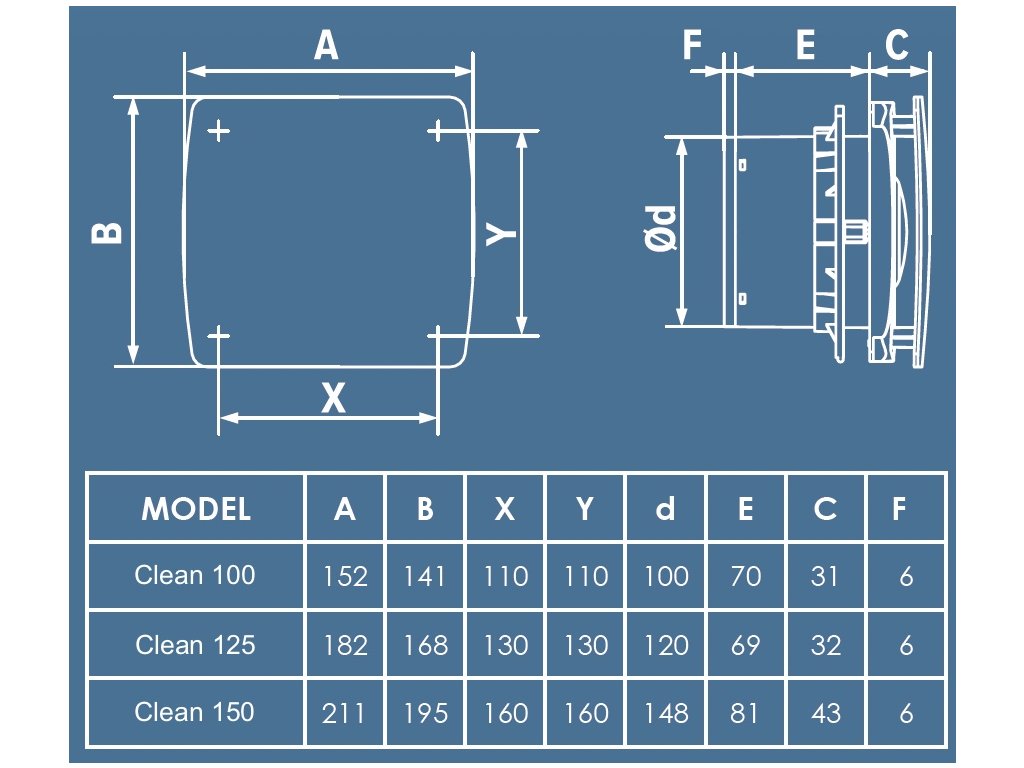 Ventila Clean Silent 150 TH je nástěnný ventilátor do koupelny s časovým doběhem a čidlem vlhkosti, určený pro spolehlivé a tiché odvětrání vlhkosti, pachů a vydýchaného vzduchu z koupelen, WC a dalších menších místností. Díky svému čistému, minimalistickému designu a hladkému čelnímu panelu bez loga působí nenápadně a elegantně, takže se snadno začlení do moderních i klasických interiérů.