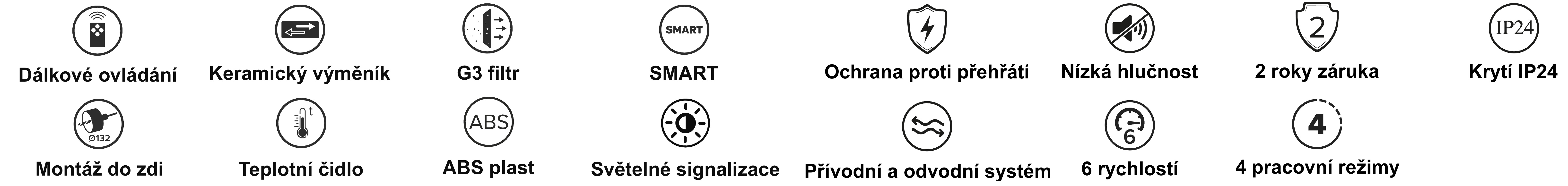 - přepínat mezi režimy přívod / odtah / rekuperace / SMART,