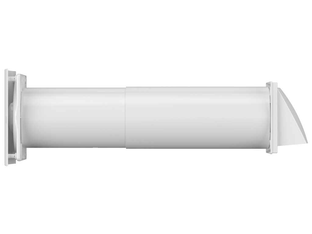 Pokud je zeď silnější než 580 mm, lze použít prodlužovací plastové potrubí až do celkové délky max. 1000 mm. Je však důležité počítat s tím, že při prodloužení nad 580 mm již nelze garantovat plný deklarovaný výkon lokální rekuperace.
