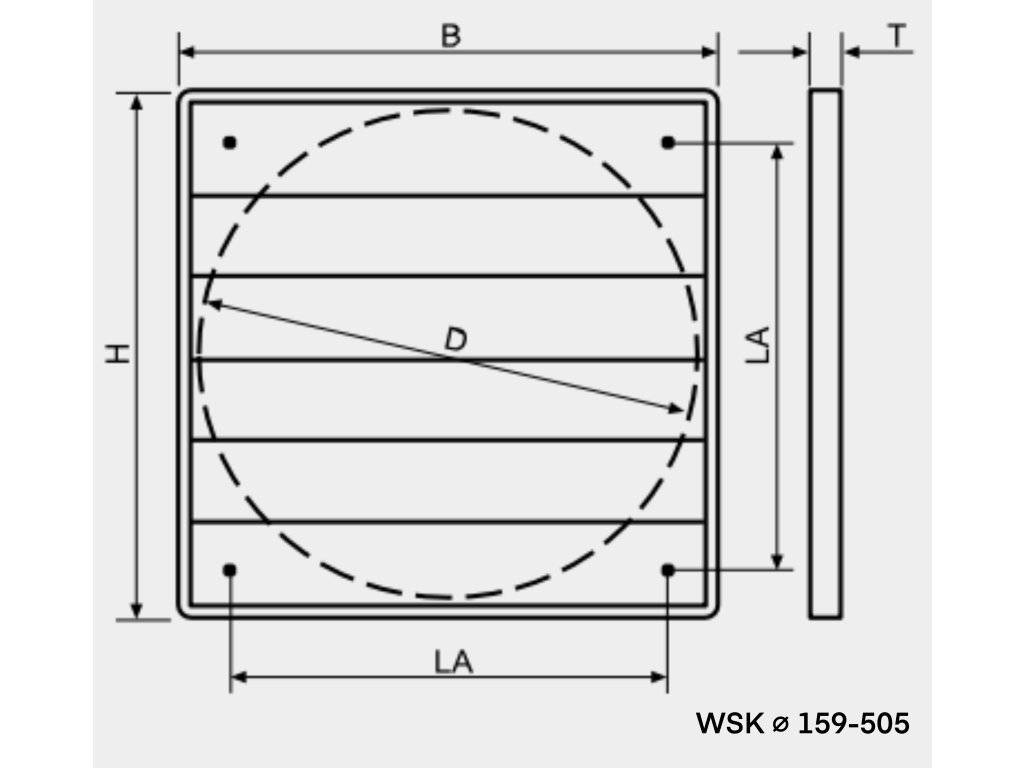 Přetlaková plastová žaluzie WSK je určena pro svislou montáž na vnější stěnu a slouží jako klapka ventilátoru pro odvětrání.