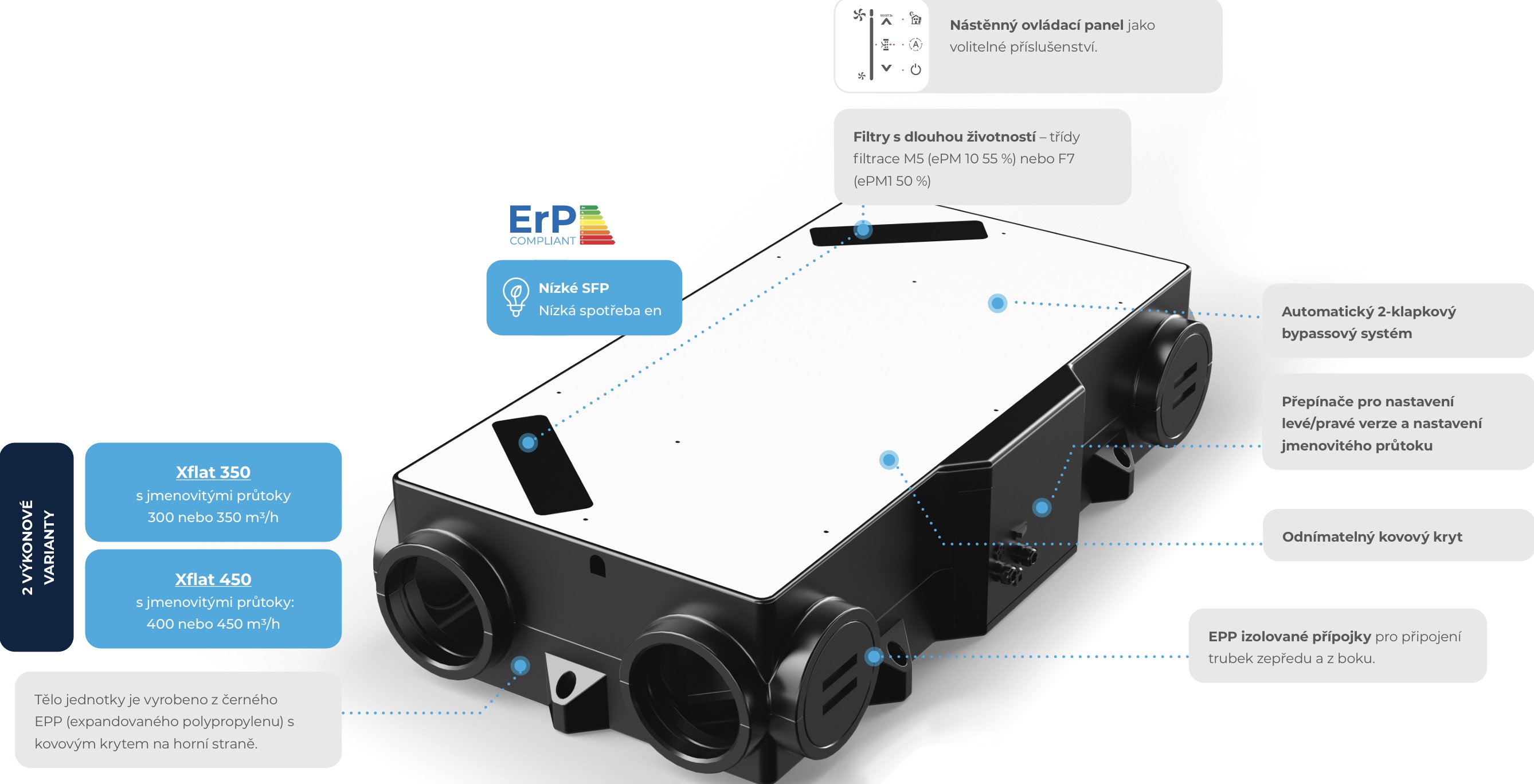 Rekuperační jednotka XFLAT 350 a XFLAT 450 představuje moderní a flexibilní řešení větrání s rekuperací tepla pro náročnější projekty, kde je klíčový výkon, účinnost a komfort řízení.